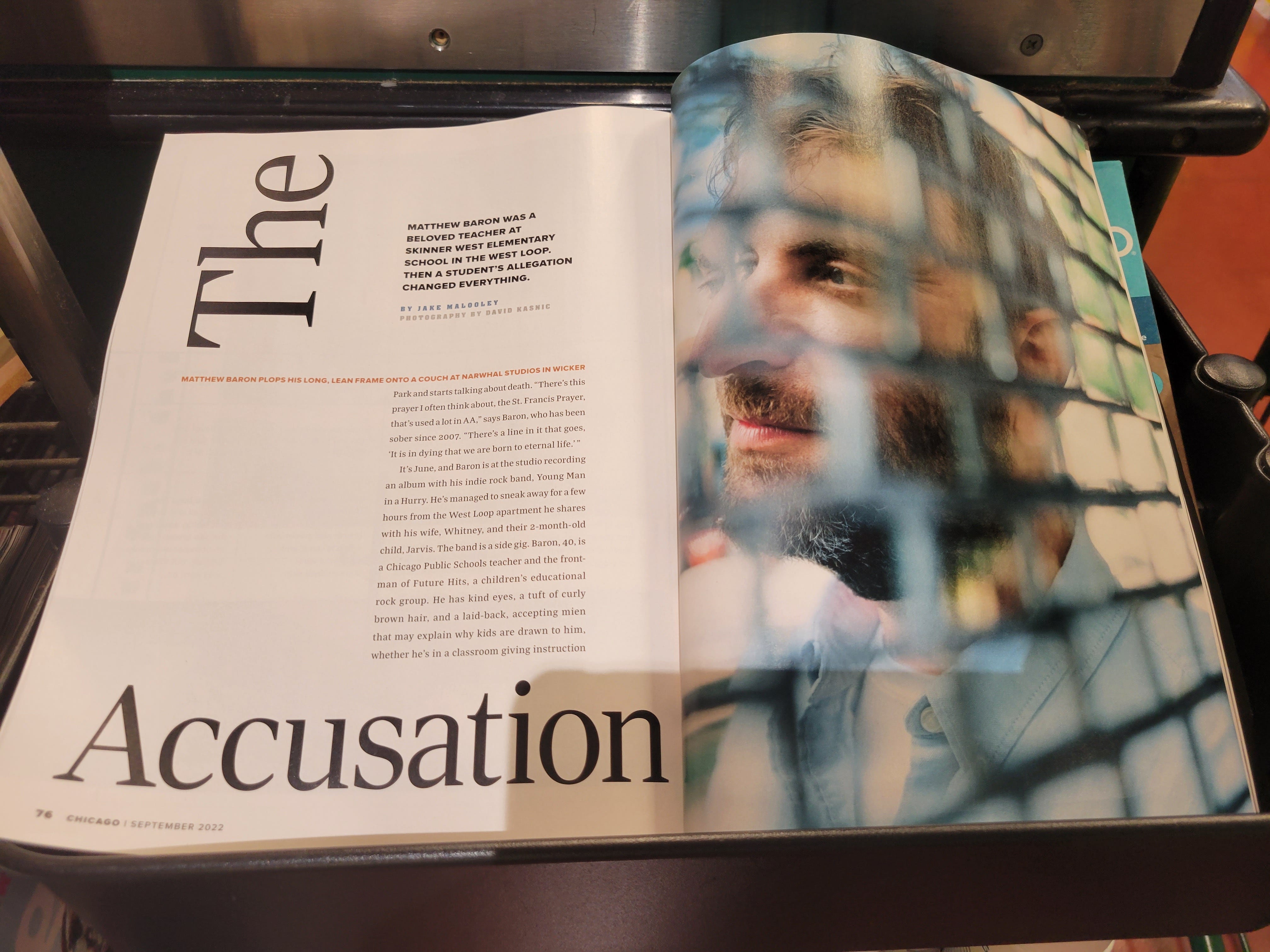 For over three years, I’ve been meaning to see Matt in person. My rekindled interest in reconnecting came after I read a wonderfully written Chicago magazine feature story about this horrible chapter in his life. Headlined simply as “The Accusation,” the 6,000-word article by Jake Malooley chronicles the saga that followed a 12-year-old boy falsely claiming Matt made inappropriate physical contact in a classroom.